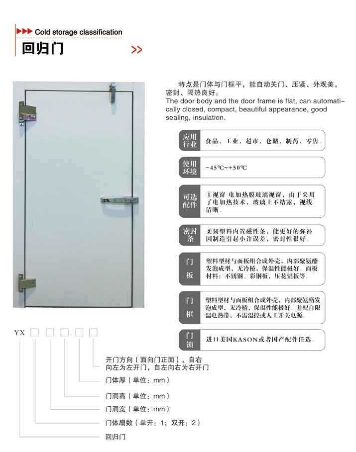 特點(diǎn)是門體與門框平,能自動關(guān)門、壓緊、外觀美,密封、隔熱良好。